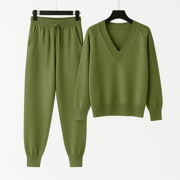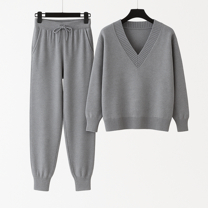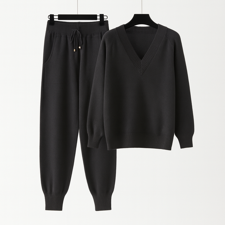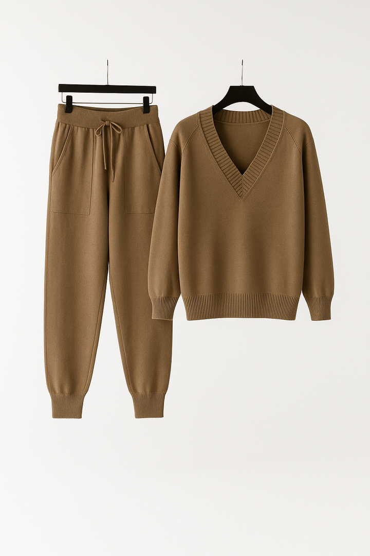 Crafted from a soft knit-blend fabric with long sleeves and coordinated bottoms, this two-piece set delivers effortless style and comfort for day-to-night wear. Designed with a clean neckline, relaxed fit and subtle matching detailing, it transitions seamlessly from casual outings to polished occasions.